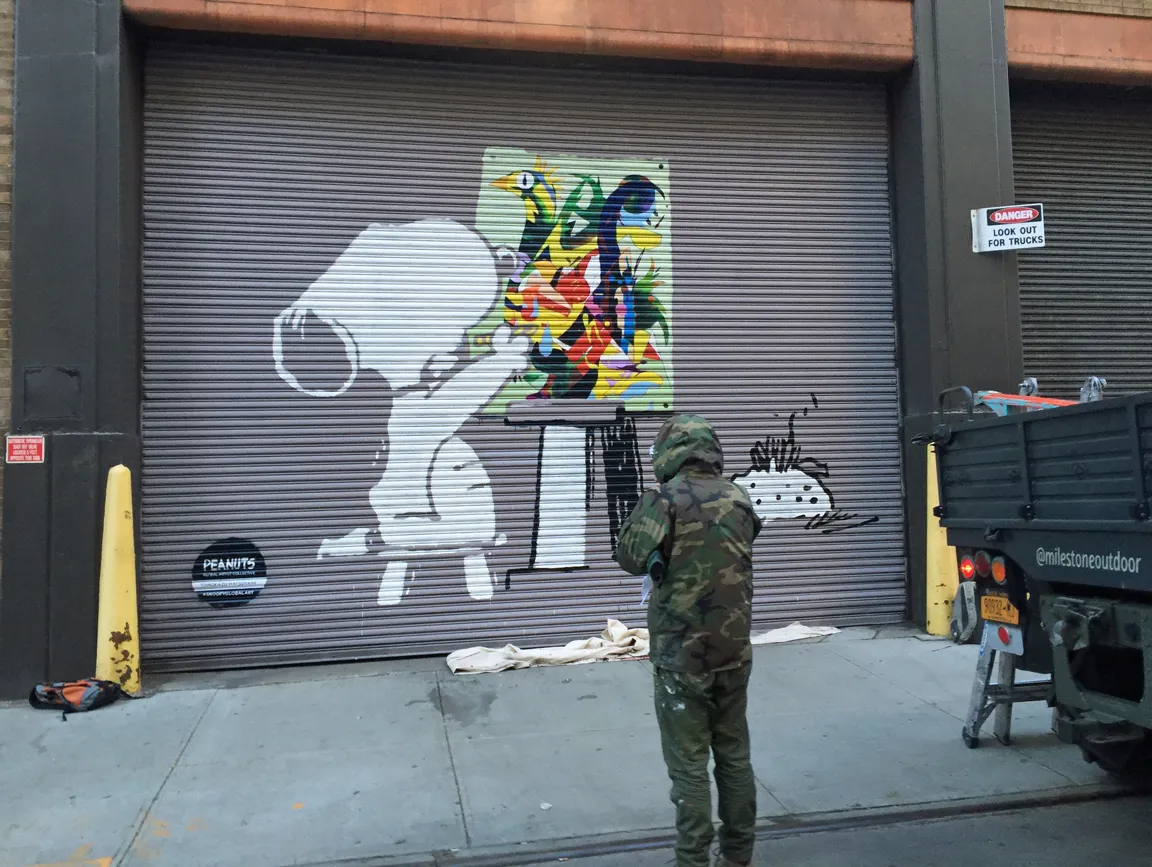Milestone was asked and tasked with recreating custom artwork for this Lower Manhattan Peanuts art campaign for the Global Artists Collective. The artists included Kenny Scharf, Friends with You, Tomokazu Matsuyama, Nina Chanel Abney, Rob Pruitt and Mr. A. Each artist created a unique piece of work inspired by the famous original art by Schultz and created a Peanuts street gallery north of Canal Street