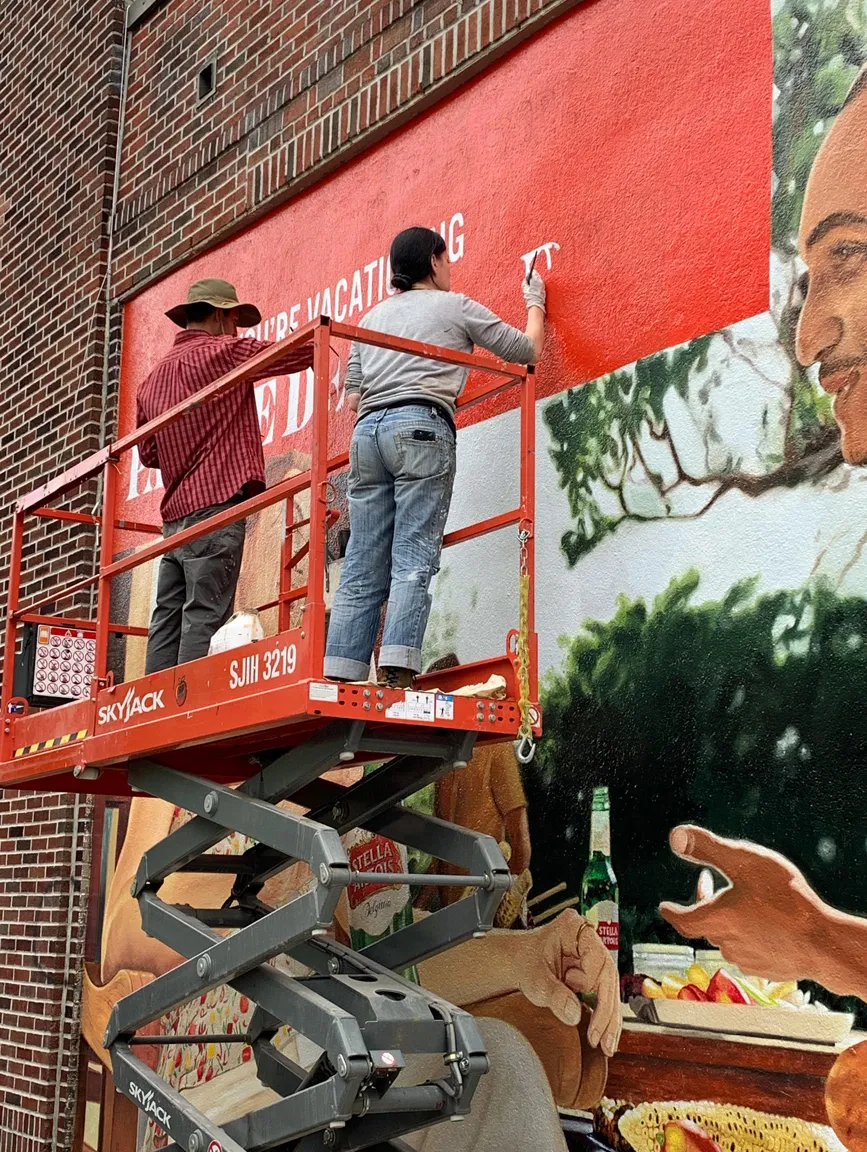 Photorealistic painting is a challenging endeavor and always catches the eye of a onlooking passersby. The attention is in the details when creating these larger than life painted murals.